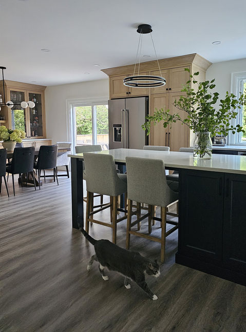 This full-service design and renovation transformed a dated 1990’s house into a warm, light-filled home with fresh finishes and functional layouts. We updated the kitchen and bathrooms, introduced cohesive flooring and millwork throughout, added custom built-ins for storage, and selected furnishings, decor, and styling to pull everything together. The result is a timeless, welcoming home designed for everyday living and entertaining.