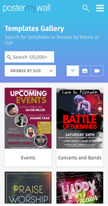 Now the question is, what do you do with your photo to turn it into a concert poster? Well you gotta love the internet! I found an easy to use and fantastic poster maker site postermywall.com with tons of designs and templates for every kind of poster, flyer, digital signage, banners and even videos! They have so many template categories to choose from; Events, Concerts, Business, Real Estate, Restaurants, Corporate, and Retail to name a few.